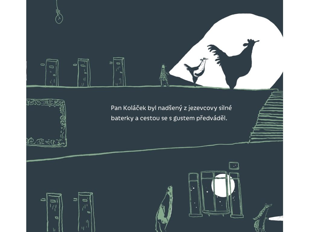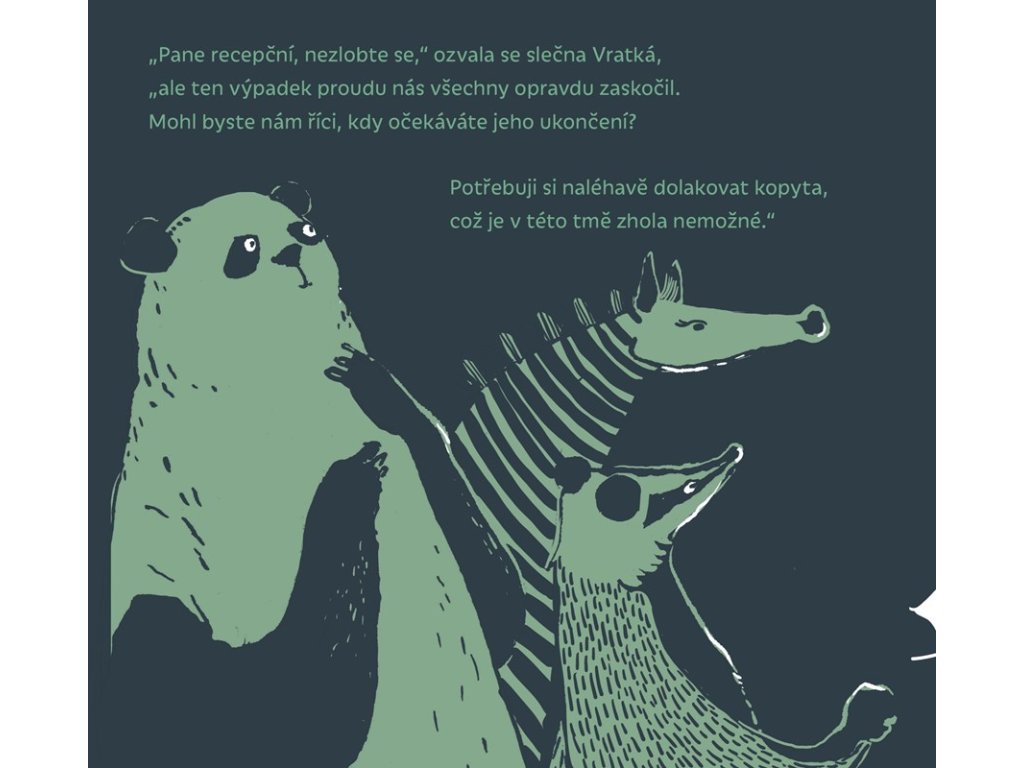 Jezevec pan Skřípal je inspektor tunelů a jen tak něčeho se nelekne. Právě usedá k večeři, když vtom – zhasne světlo! Jaká drzost! Je to výpadek elektřiny? Možná. Pan Skřípal bere svou nejsilnější baterku a vydává se k recepci zjistit co a jak. V hotelu je tma jako v jezevčí noře. A ve tmě všechno vypadá mnohem, MNOHEM strašidelněji. Světlo baterky kreslí po chodbách neuvěřitelné věci. A co teprve na recepci! Tam řádí nejpříšernější, nejukrutánštější příšera… ze které se ve vteřině vyklube… no jen se nechte překvapit! Legrační, napínavá a důmyslně ilustrovaná knížka o tom, že nic není takové, jak to ve tmě na první pohled vypadá. A že proti strachu se nejlépe bojuje se silnou baterkou v ruce a hlavně s pomocí kamarádů.