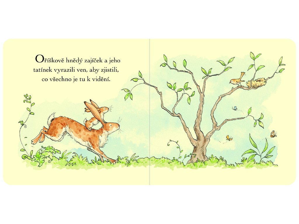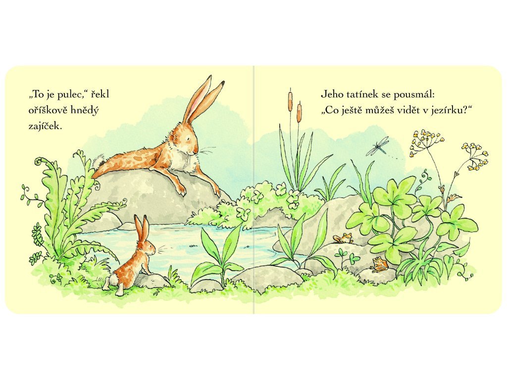 Oříškově hnědý zajíček a jeho tatínek se spolu rádi vydávají na cesty za poznáním. Copak asi venku objeví dnes? Kouzelná knížka s překrásnými ilustracemi z oblíbené série příběhů o oříškově hnědém zajíčkovi a jeho tatínkovi potěší i ty nejmenší čtenáře. Na konci knihy se ukrývá zrcátko a také jedno překvapení. Co spatřil zajíček na vodní hladině? A co tam uvidíš ty?