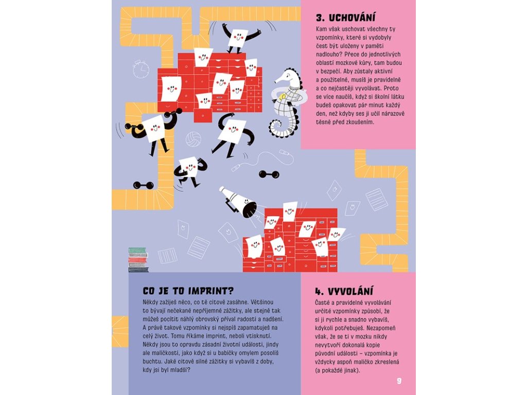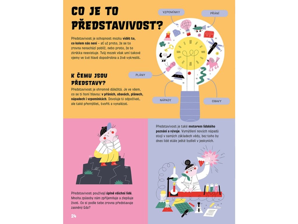 Lidský mozek je ohromně složitý. A taky mimořádně zajímavý! Jak vlastně funguje? Proč si tak snadno zapamatuješ jména svých oblíbených seriálových hrdinů i jejich protivníků, ale matematický vzoreček nebo důležitý letopočet si do hlavy ne a ne uložit? Proč se myšlenky různých lidí vzájemně tak liší, že si někdy vůbec nerozumíme? Jak se tvoří sny? Můžeme si paměť představit jako rozlehlou knihovnu? A co má představivost společného se symfonickým orchestrem? Nahlédni do fascinujícího světa lidské paměti a představivosti a odhal jejich tajemství…