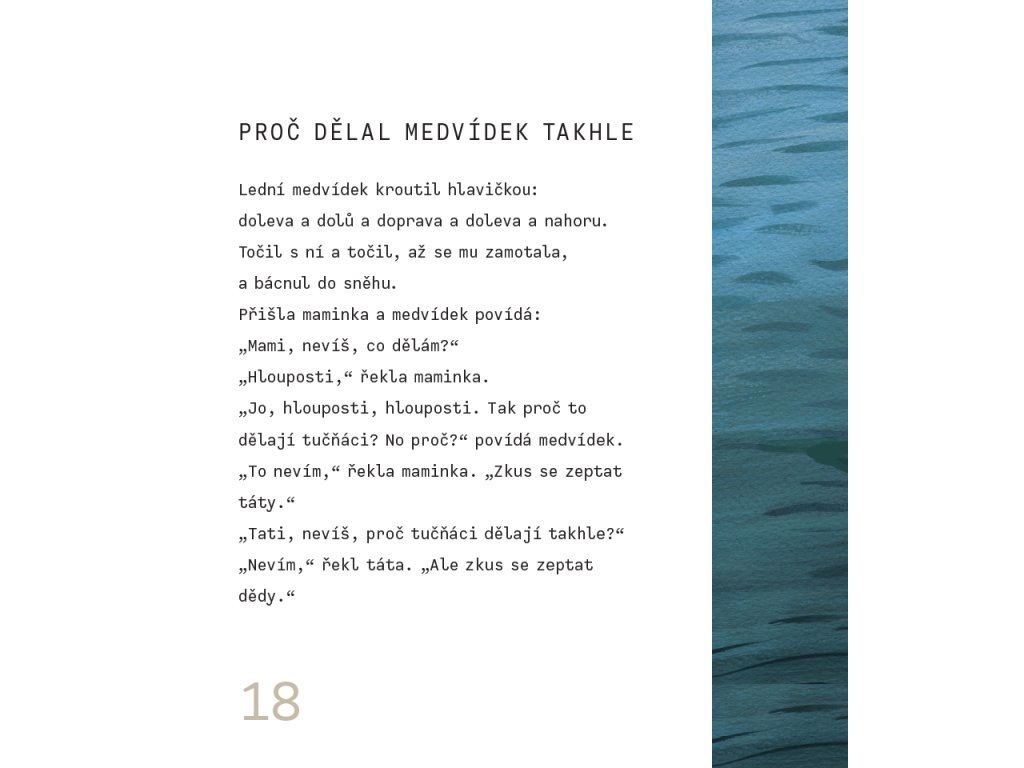 Proč měl špaček špatný den? Co dovede králíček nejlépe? A co říkal děda slon? Krátké pohádky pro nejmenší vycházejí z běžných situací, které rodiče se svými dětmi zažívají dnes a denně. Berou si na paškál dětské nešvary, schválnosti, rodičovská „moudra“ a taky trochu dětskou upřímnost, která dokáže i nepříjemné věci podat úsměvně. Pohádky ve formě literární anekdoty jsou krátké, vtipné, a to pro děti i pro dospělé.