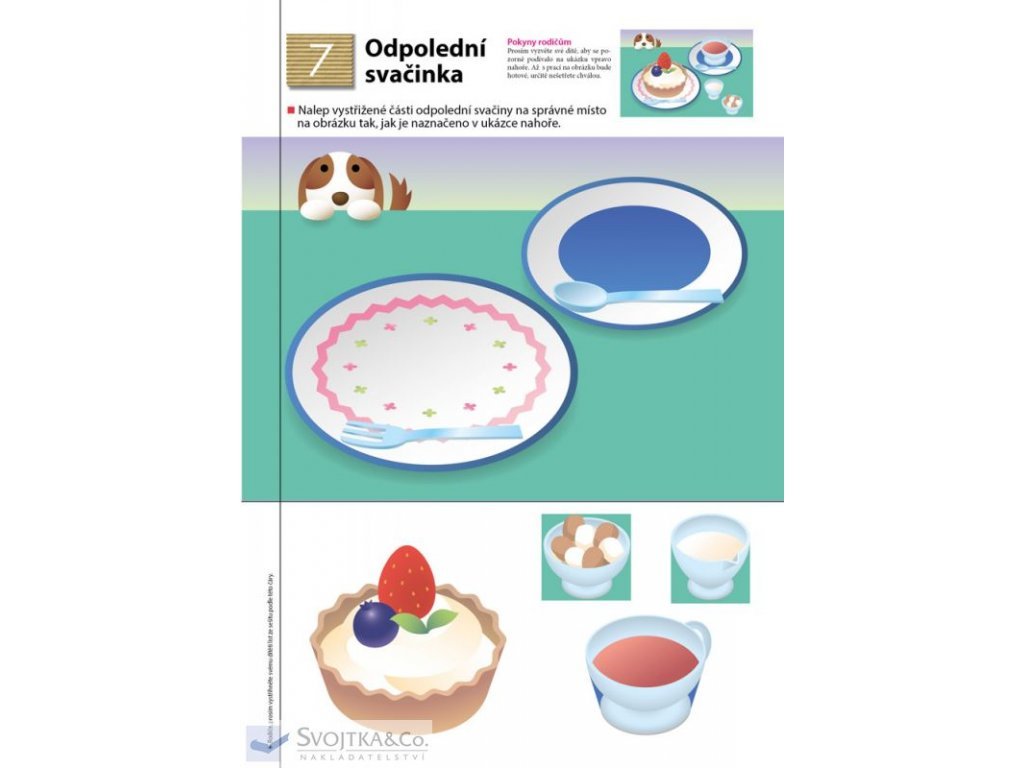 Pokud již vaše dítě úspěšně zvládlo pracovní sešit Stříhání, tento sešit na něj navazuje. Záměrem tohoto pracovního sešitu je zlepšit dovednost dětí při práci s nůžkami a lepidlem. Dítě, které si již osvojilo schopnost používat nůžky, najde na každé stránce tohoto sešitu různé tvary k vystřihnutí, které bude následně lepit na určené místo. Úkoly k jednotlivým obrázkům jsou postupně složitější. Metoda učení se od jednoduššího ke složitějšímu umožňuje dětem naučit se bez potíží potřebné techniky. Aktivní používání prstů a rukou pomůže dětem rozvíjet jejich jemné motorické schopnosti. Dětem se bude líbit, jak se ilustrace stříháním a nalepováním mění, a budou při tom též pociťovat radost z vytváření věcí vlastníma rukama.