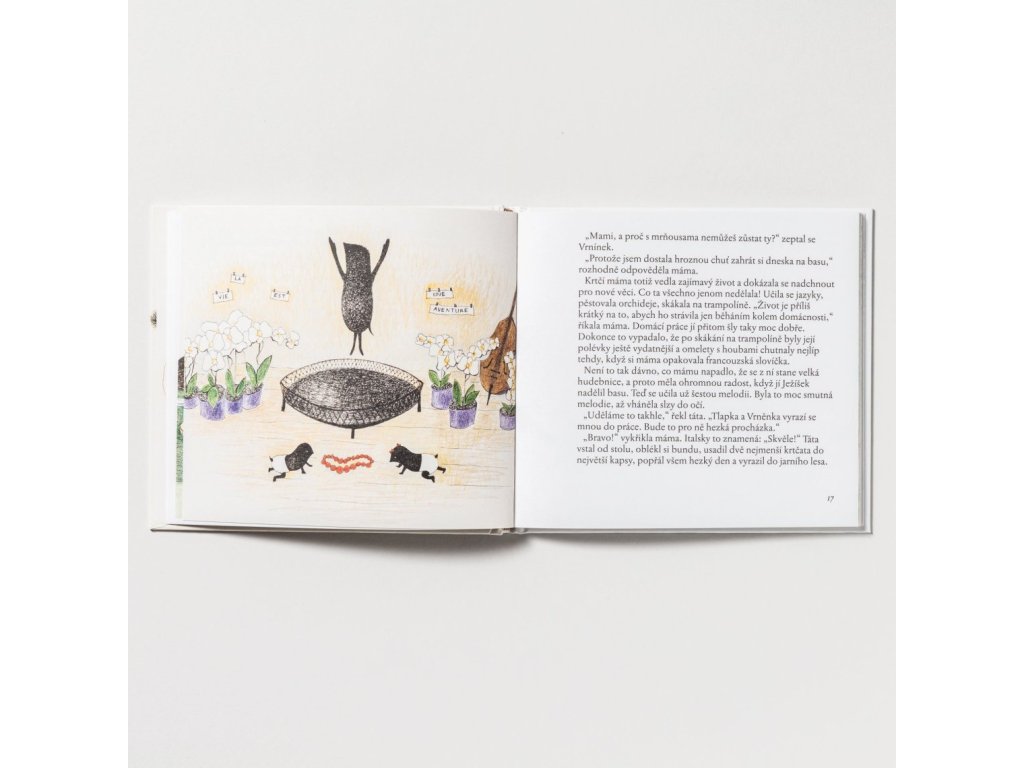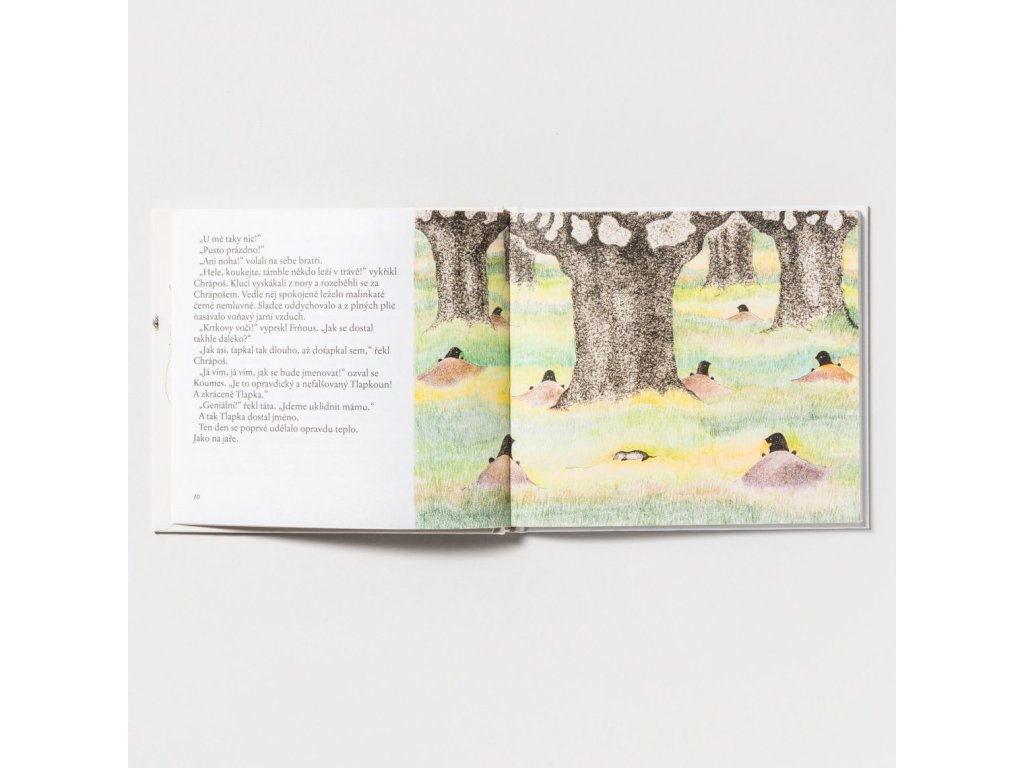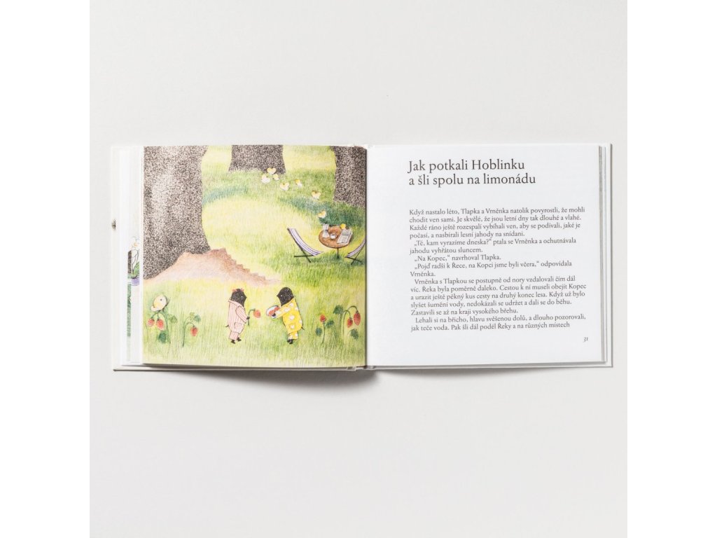 Tak se Vrněnka s Tlapkou začnou rozkoukávat po světě. A ať je jaro, léto, nebo podzim, je pořád co vidět: třeba modrou kouli, z níž se vylíhne pták, krtka, co se topí v řece (a potřebuje zachránit) nebo malou zaječici, které se ztratila maminka... A taky sníh, když se zrovna začne sypat. Příběh o tom, jak je dobré mít kamarády a pomáhat všem, co to potřebují, je určen čtenářům (i nečtenářům) od pěti let.