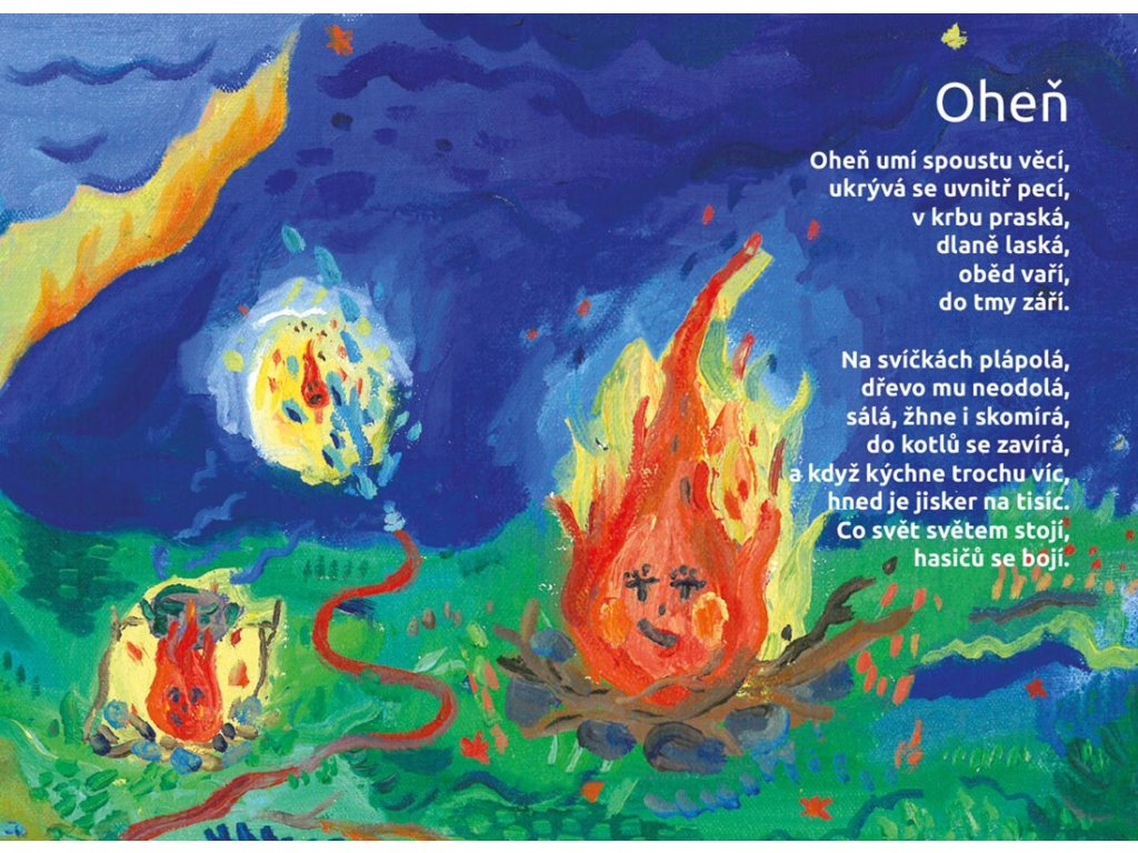 Cítíte, jak vás leporelo v ruce pálí jako oheň? Jak je mokré, a hned zas suché, jak se třese a soptí, a vlní se jako moře a zebe jako mráz a barvy jsou v něm jako duha a mezi jeho stránkami vítr hvízdá? Živly oživly!