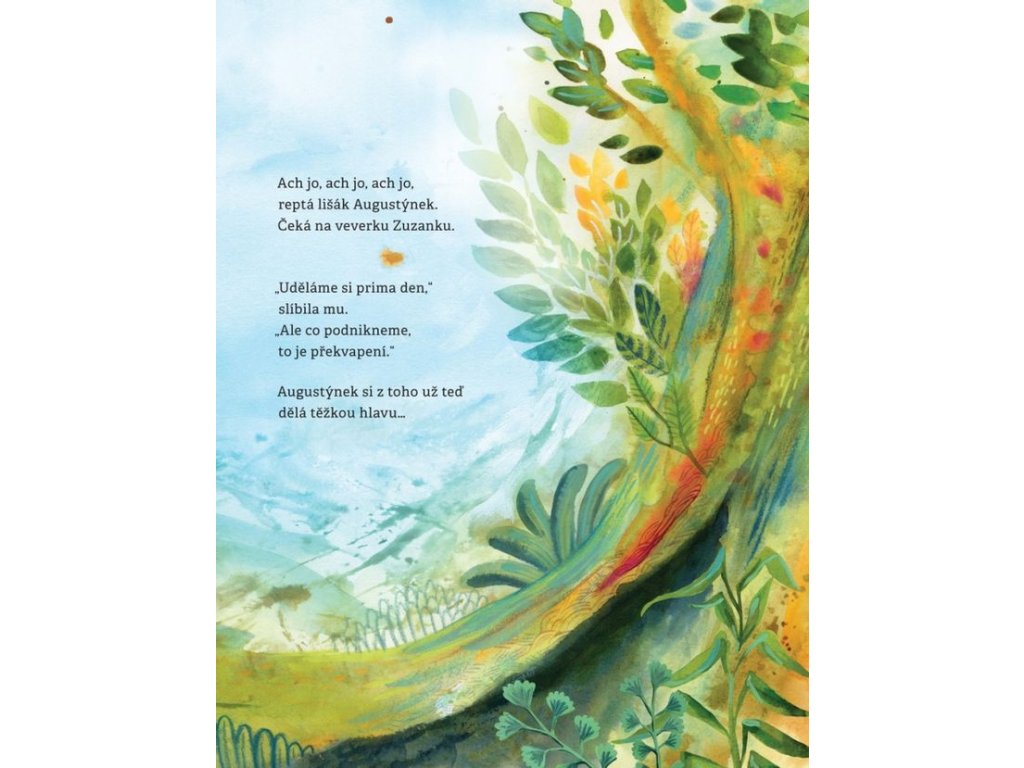 Máte rádi překvapení? Jestli jste jako lišáček Augustýnek, tak asi těžko. Mít věci pěkně pod kontrolou, aby se nemusel bát, že ho něco zaskočí. Tak právě takový je Augustýn. Jeho milá kamarádka, veverka Zuzanka, je naopak plná energie a překvápka jsou její specialitou. A když Augustýnkovi oznámí, že ho čeká den plný… překvapení, začne se lišáček bát. On přece vůbec není takový jako jeho kamarádka. Rád si čte, je v klidu, maluje si, zatímco ona? Pořád běhá a skáče a má neobvyklé nápady. Co když pozve nějakou obludnou obludu? Co když ho bude nutit do šílených ztřeštěností? Co když ho nechá, aby si vybral z tisíců možností? Překvápko, které na něj čeká, je veselé a milé a přesně podle Augustýnkova gusta. Kamarádi vás totiž dobře znají a umějí vymyslet právě to, co vás potěší.