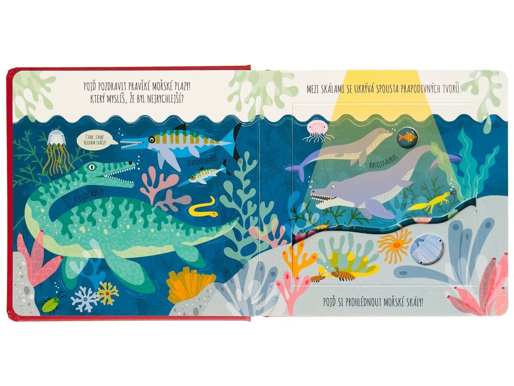 Pojď se seznámit s nejrůznějšími dinosaury a pravěkými tvory. Kdo se to ukrývá mezi skálami v oceánu? Který dinosaurus má hřbetní desky? A kdo byl postrach na pravěkých planinách? Prozkoumej nejrůznější prostředí v tomto roztomile ilustrovaném leporelu, které děti provede pravěkým světem dinosaurů. Jednoduché popisky a poučné informace pod okénky nadchnou každého malého paleontologa a malou paleontoložku.