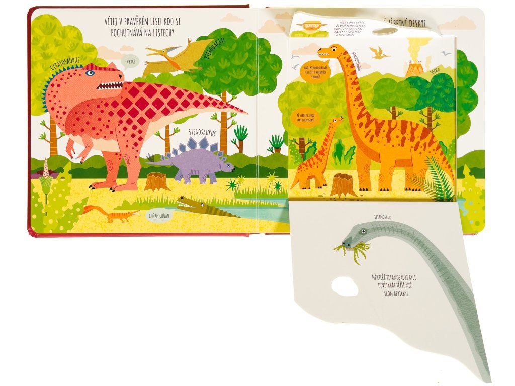 Obrázková kniha, pevné stránky, odklápěcí okénka, příroda, dinosauři