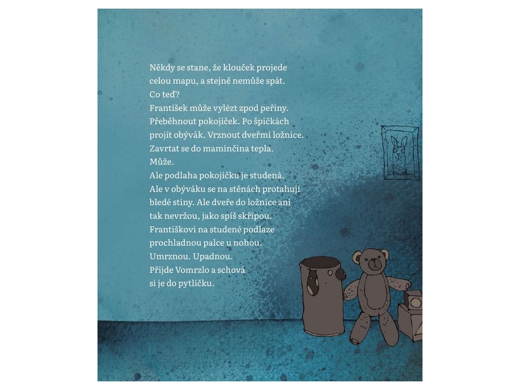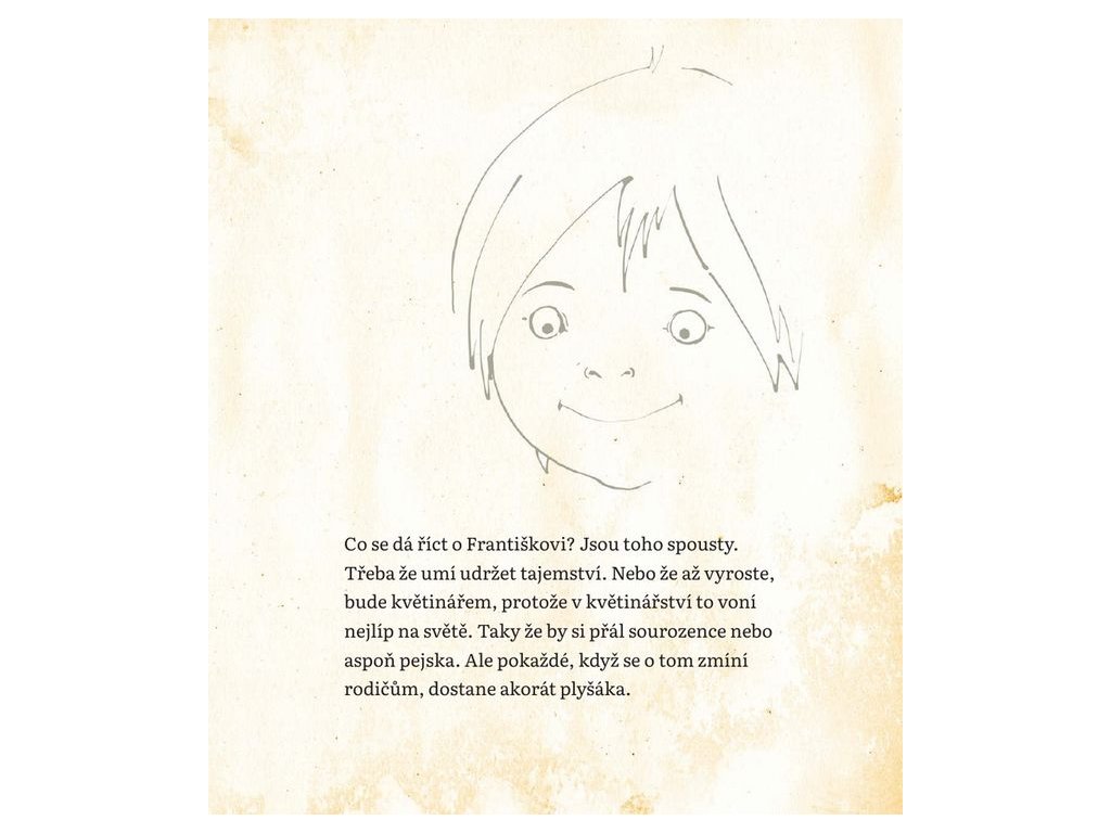 František je malý kluk. Většinou nemůže najít jednu ponožku, ale zato pastelky má vždycky aspoň tři. Někdy se František vzbudí uprostřed noci. Leží a nemůže spát. Co teď?