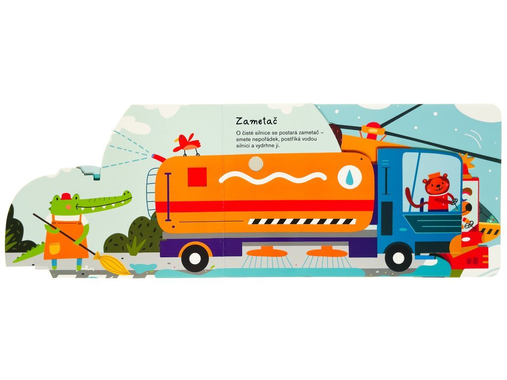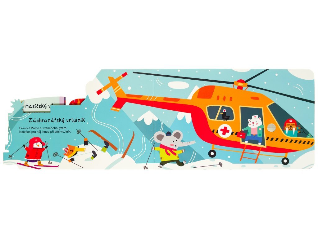 Objevujte fascinující svět záchranářů s tímto tvarovaným leporelem s výřezy plným zvuků! Děti se seznámí se sanitkou, policejním autem, odtahovkou či hasičským vozem. Stisknutím tlačítka si poslechnou realistické zvuky, které každý stroj vydává. Tato kniha je skvělou zábavou pro malé záchranáře i záchranářky, kteří rádi objevují a poznávají, jak věci fungují.